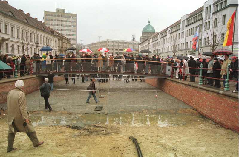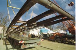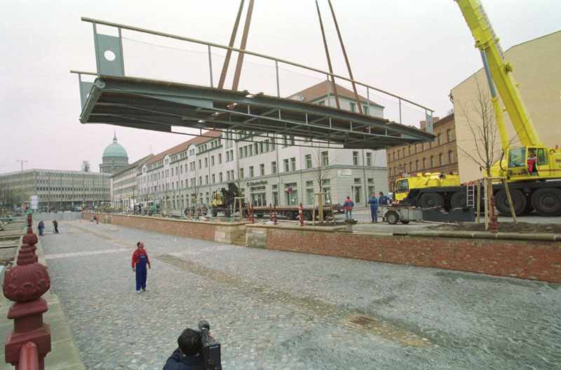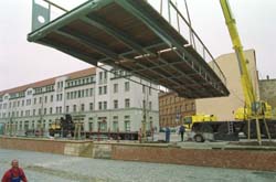 Rollout der Brücke. Das Einschweben der Konstruktion durch die Potsdamer Firma Buchardi.