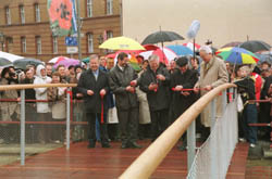 Eröffnung der Ladenbergbrücke mit Musik, Prominenz und, trotz miesen Wetters, vielen Besuchern.